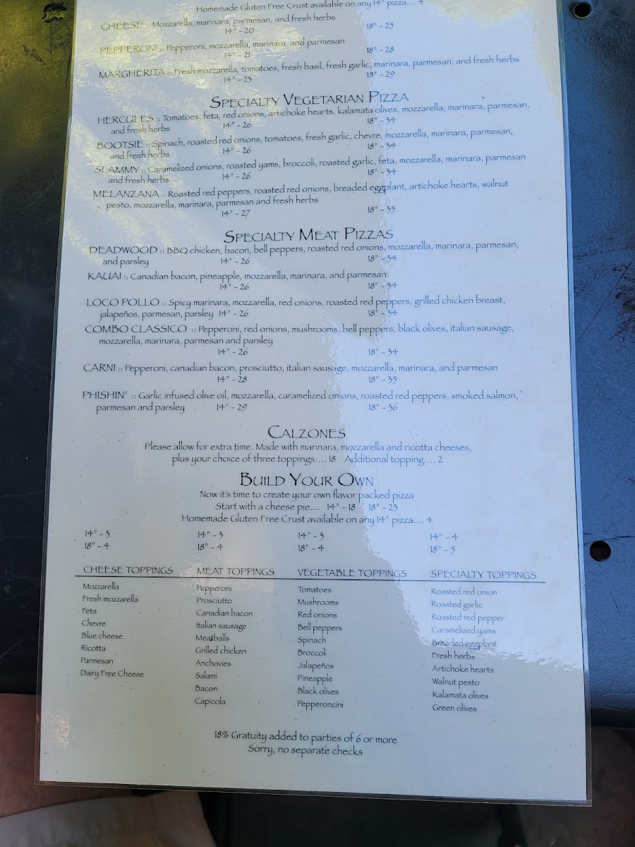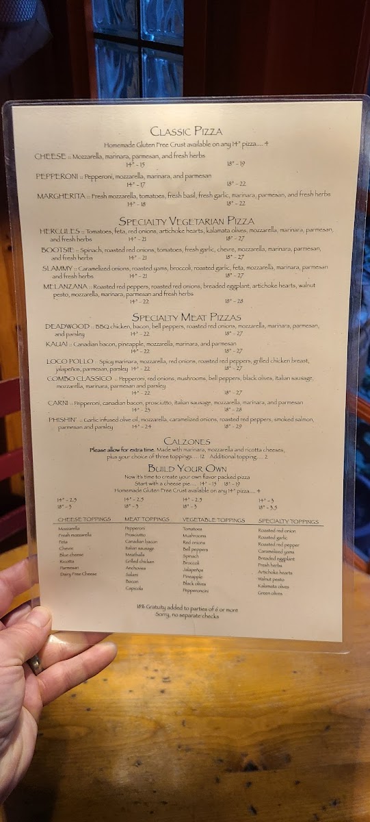The menu features a great selection of hand-tossed pizzas, each made with fresh, locally sourced ingredients. If you're feeling adventurous, try one of their unique combos or opt for a build-your-own pizza with your favorite toppings. Along with their pizza offerings, you'll find tasty sides, pastas, and desserts that perfectly complement any meal.